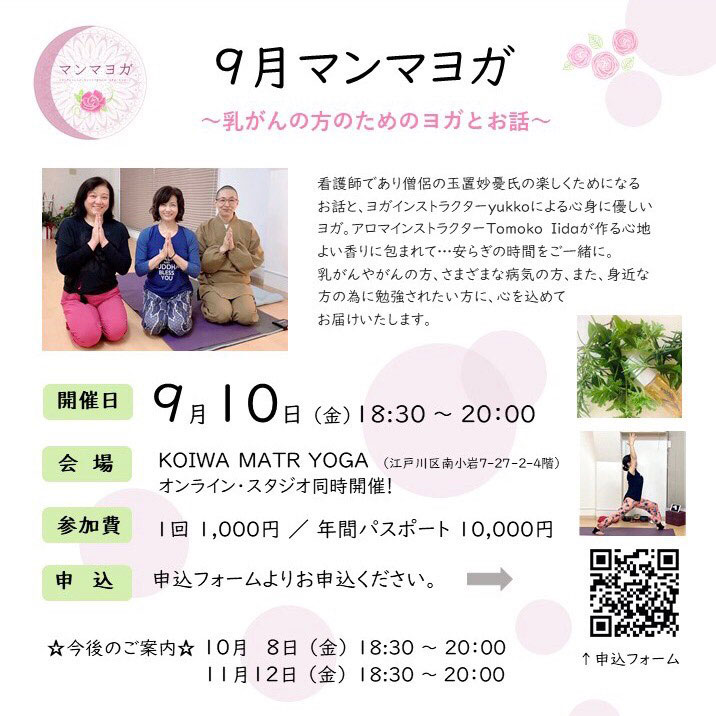 小岩駅前昭和通りにあるヨガスタジオマートリにて(オンラインも同時開催!)